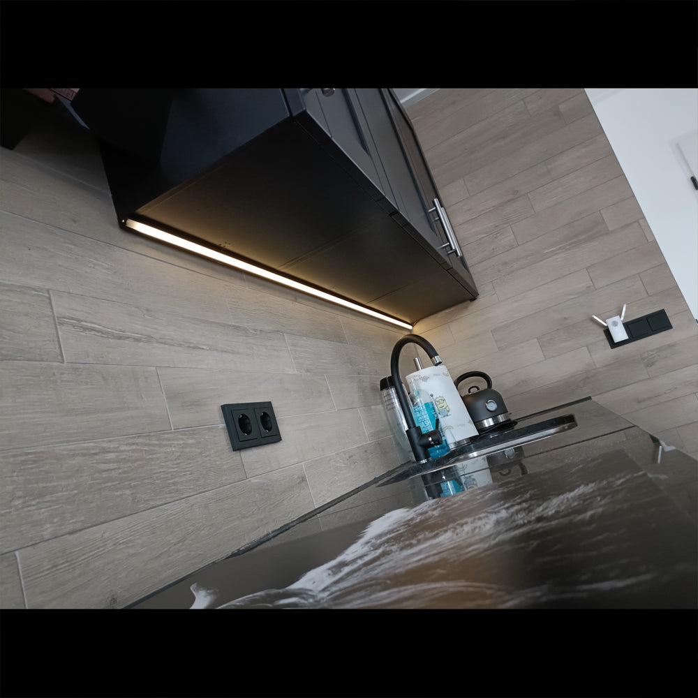 Creëer een subtiele en professionele uitstraling met onopvallende verlichting in bijvoorbeeld nissen, keukenkastjes of onder plinten. -