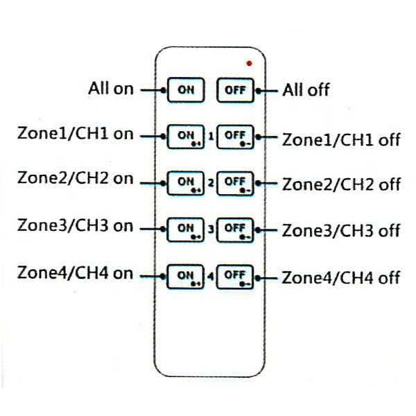 Deze draadloze dimbare 4 zone afstandsbediening werkt op een radio frequency van 2.4Ghz. Dit betekend dat u alle LED lampen kunt dimmen samen met een draadloze LED dimmer. De afstandsbediening heeft een bereik van 30 meter. En u kunt met één afstandsbediening 4 kanalen bedienen. Dat betekent dus wanneer u 4 draadloze dimmers heeft kunt u op elk kanaal 1 dimmer koppelen. En dan kunt u bijvoorbeeld de keuken, woonkamer, slaapkamer, overkapping apart van elkaar bedienen. Of uiteraard alles in een keer samen uitschakelen.
