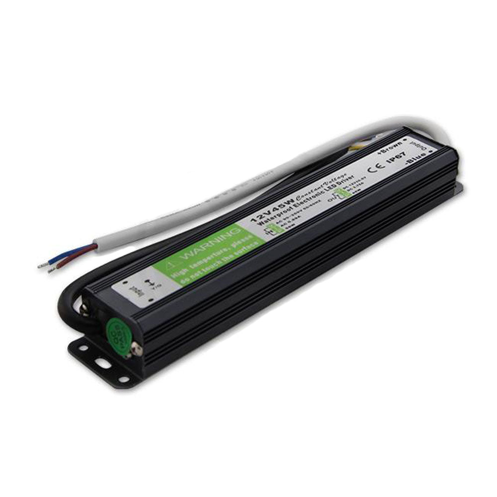 Deze LED Driver vormt 220-230V (netstroom) om naar 12 Volt. De driver beschikt over een input voltage van: 110-240 Volt. Met zijn waterdichte behuizing is deze driver dus geschikt voor buiten. De driver beschikt over een maximaal vermogen van 45 Watt. De LED Driver is compleet verzegeld en bereikt een waterproof sterkte van IP67. De driver beschikt aan beide kanten over een kabel van 20 centimeter.