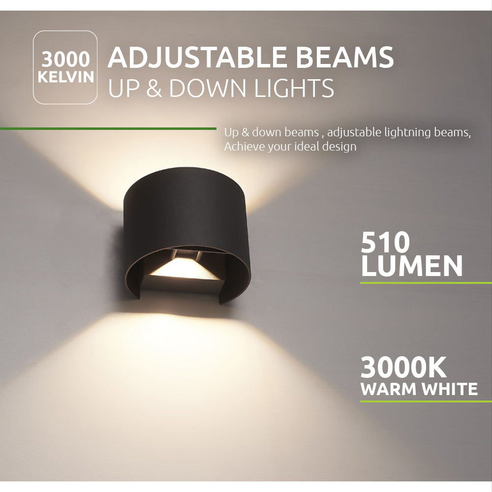 Deze wandspot schijnt licht naar boven en beneden. Daarnaast kan u zelf de stralingshoek van de spot bepalen, door dit makkelijk te verstellen. U bepaalt dan zelf welke richtingen het licht op schijnt, zie als voorbeeld de bovenstaande afbeeldingen.