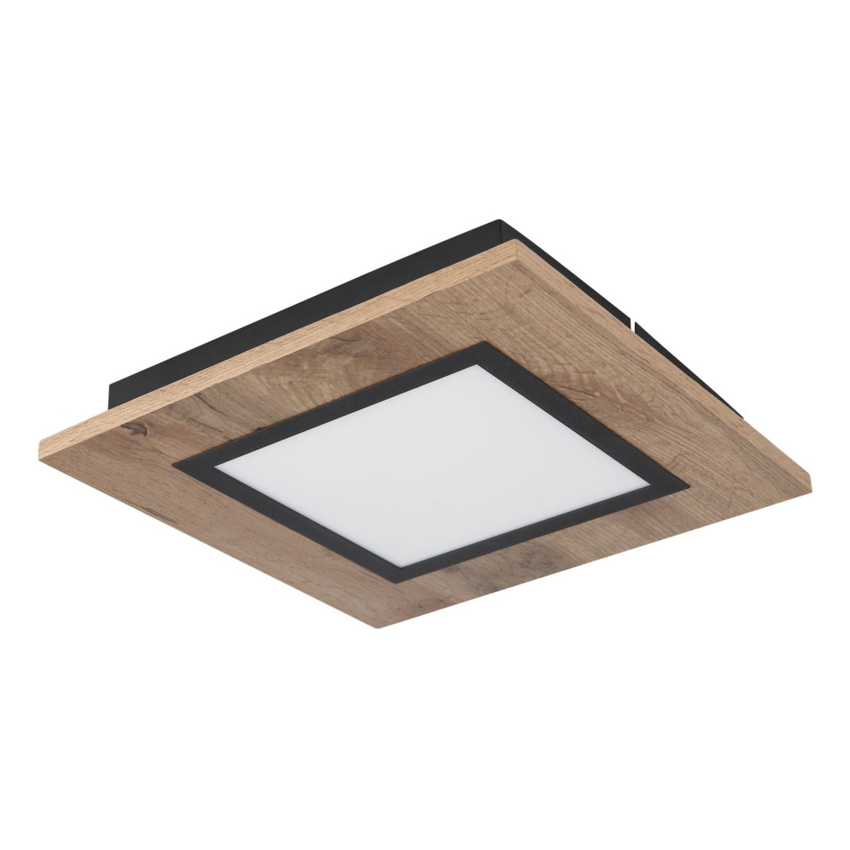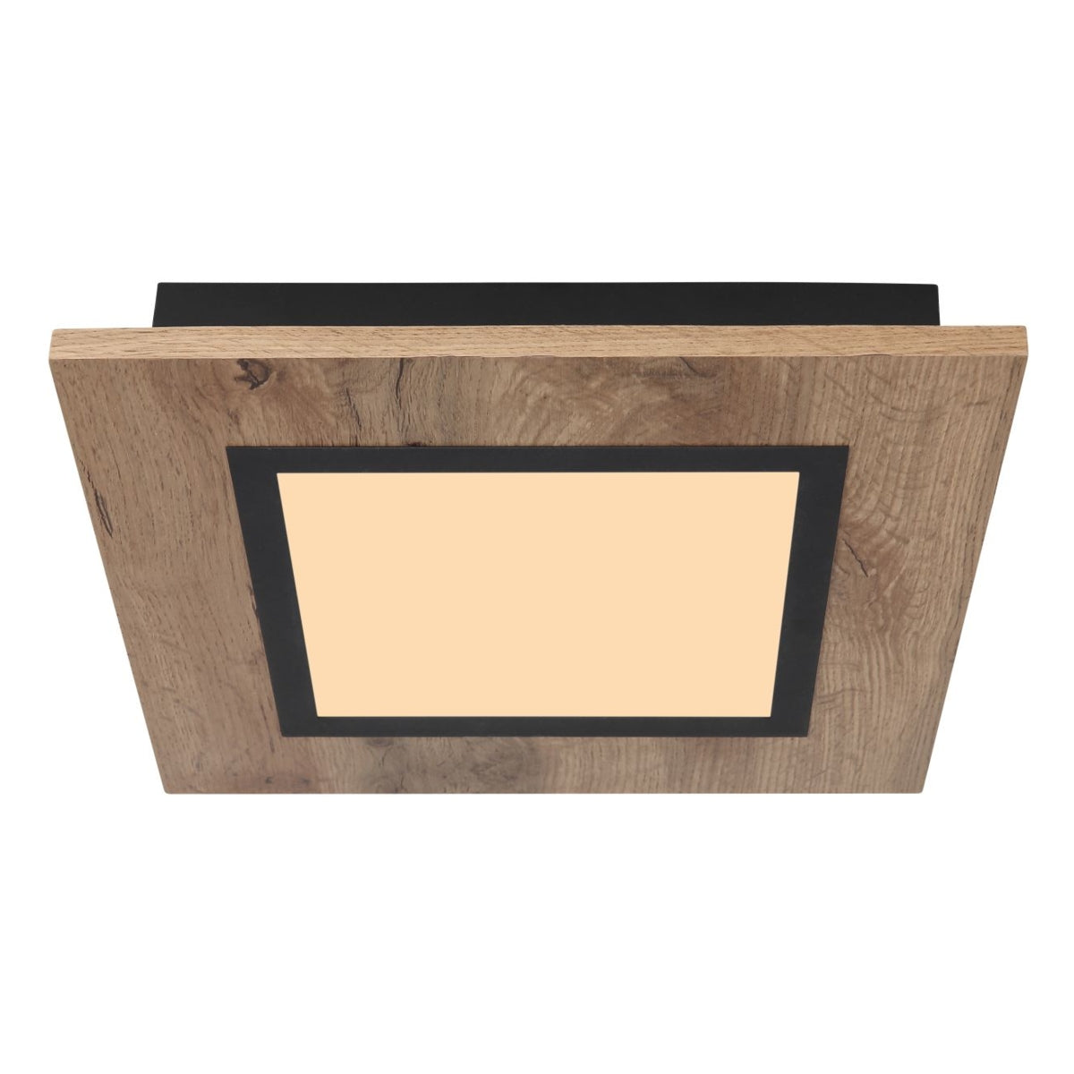 De mooie plafondlamp uit de LEA-serie inspireert met zijn eenvoudige ontwerp. Op een matzwarte plafondbevestiging bevindt zich een fraai vierkant MDF-frame in houtlook (30 x 30 cm) met een opaal plastic afdekking. Een bijgevoegd LED-paneel zorgt voor een warm wit licht van 3000 Kelvin en zorgt zo voor een aangename sfeer.