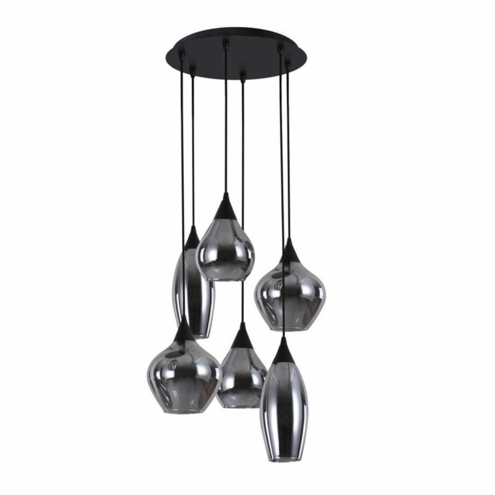 De hanglamp Cambio is een moderne lamp met een zeer elegant uiterlijk. De combinatie tussen het zwarte armatuur en de zwartkleurige glazen kappen zorgt voor een uniek uiterlijk. De hoogte van de lampenkappen zijn afzonderlijk van elkaar te verstellen waardoor u de lamp naar wens kunt inrichten en er een speels effect ontstaat. De lamp is eenvoudig te monteren door de eenvoudige beugel aan de plafondplaat.