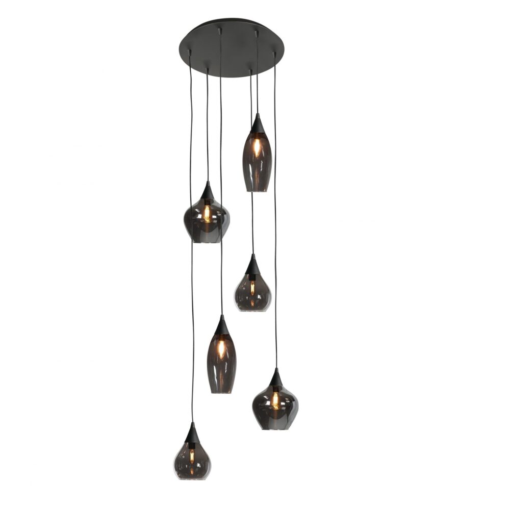 Highlight Zwarte hanglamp rond van glas 46cm - Modern design - Rond | 6x E14 fitting - Cambio