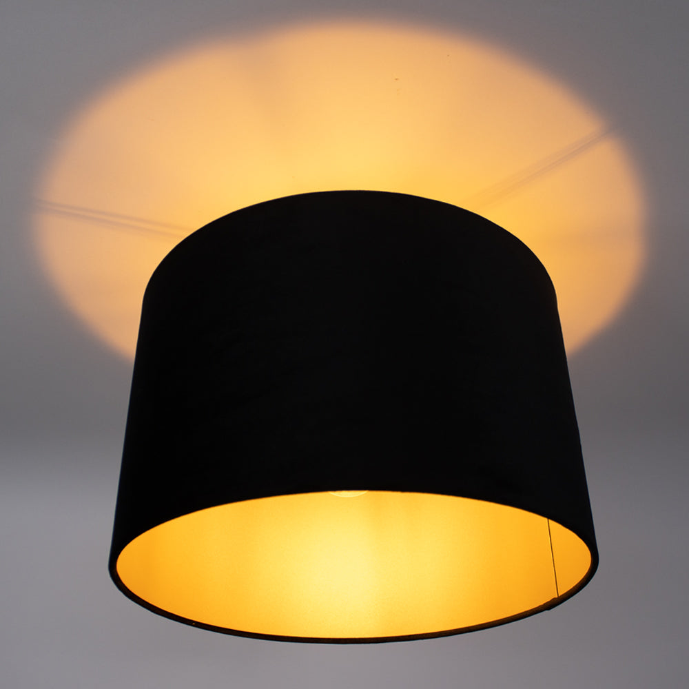 Stoffen lampenkap velvet | Zwart met Gouden binnenkant | Ø20cm