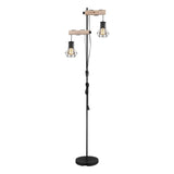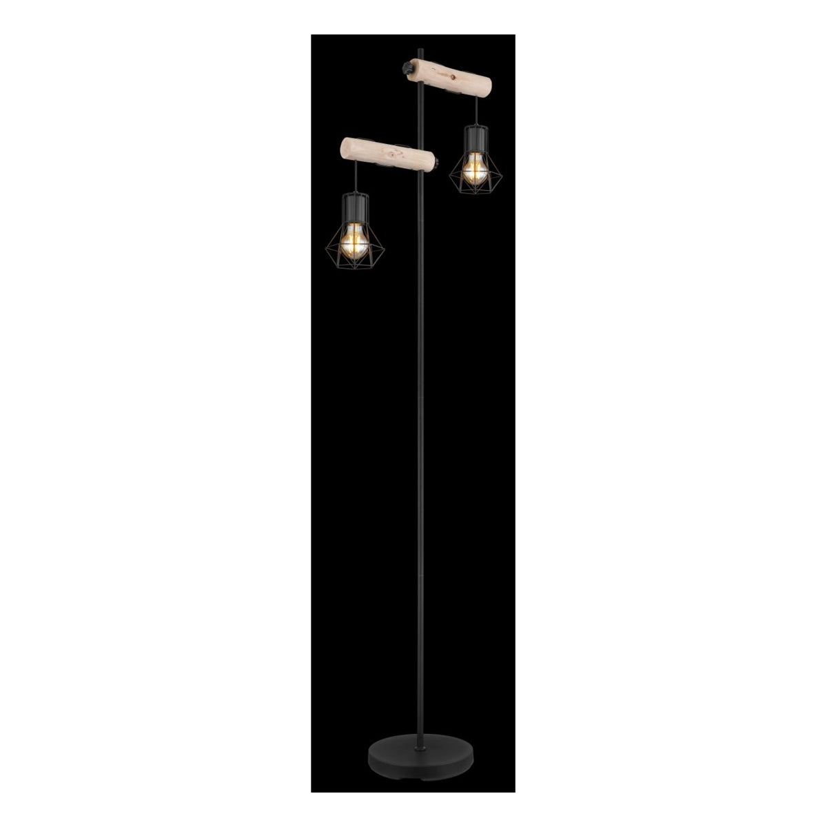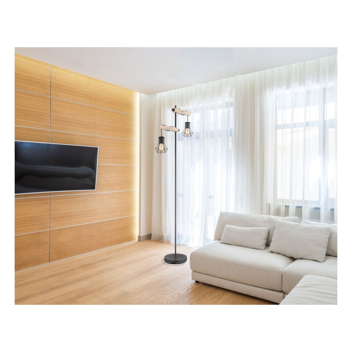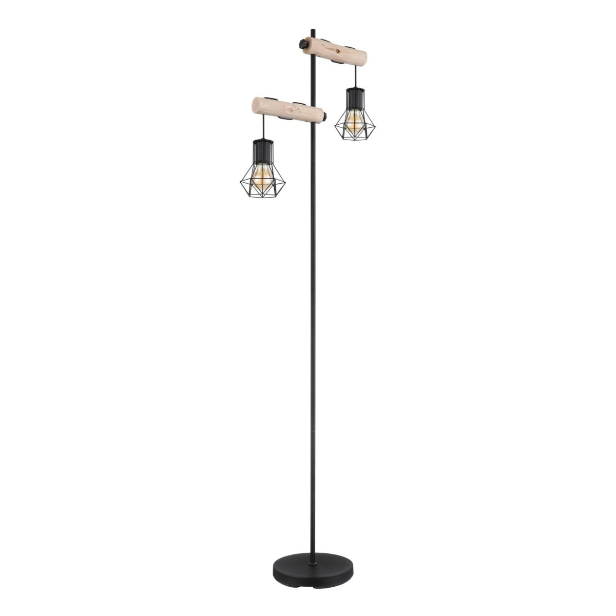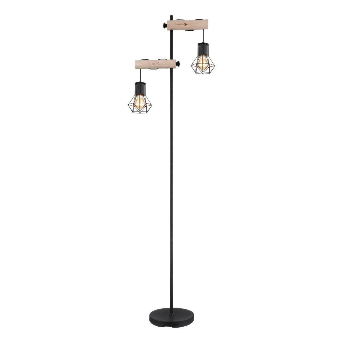Vloerlamp PRISKA Metaal-Hout 168.0cm Matt zwart | Hout E27 2-Lichts